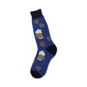 Calling beer enthusiasts with a taste for pretzels and fun! Our Beer and Pretzel socks will take your feet on a delicious journey with their vibrant blue pattern of frothy beer steins and salty pretzels. These crew socks scream Oktoberfest and won't leave you feeling thirsty. Let your feet do the talking and show off your love for the perfect bar snack and thirst-quencher combo!