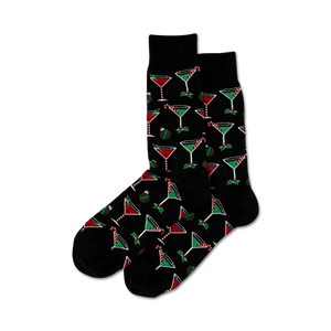 Deck the halls and pour yourself a cozy glass of holiday cheer, cause these Christmas Cocktails socks will turn your feet into the jolliest party in town! With their festive pattern of red and green martini glasses and candy canes set against a classy black background, these crew length socks are guaranteed to add a splash of merriment to your winter wardrobe. So, slip on a pair, grab your favorite holiday cocktail, and let the good times sleigh-ng!
