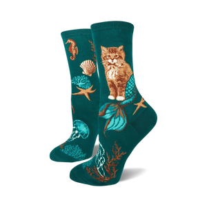 Dive into the enchanting world of Purrmaids, where whimsical orange tabbies don mermaid tails, lounging upon a bed of starfish, jellyfish, and seashells. These seafaring felines add a dash of underwater magic to your feet, reminding you to embrace your playful side and dive headfirst into life's adventures.