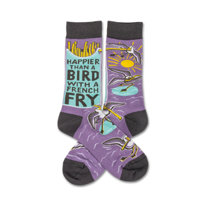 Feet Crushing It! Our socks got you covered with the "Happier Than a Bird With a French Fry" design. These purple crew socks for women are like a crispy fry for your feet. Plus, they're like a warm hug for your ankles, making you the happiest bird in town!