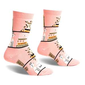 Ever feel like your feet have a story to tell? These socks are the perfect plot twist! With adorable white dogs and books adorning the pink fabric, it's like having a library on your feet. Whether you're a bookworm, a dog lover, or both, these socks are sure to add a whimsical touch to your wardrobe. Let your feet do the talking without saying a word!