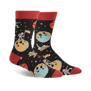 These awesome socks may not get you walking on the moon anytime soon but they will let people know you appreciate the feet of space travel. Get it? Each cool pair shows several spacemen making the journey through space to place a flag on the moon. Talk about an out-of-this-world pair of socks!