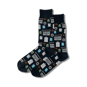 Ready to balance your style ledger? These accountant-themed crew socks are a perfect fit for number lovers! Featuring a playful pattern of calculators, laptops, a stack of W2s, coffee cups, and clipboards, they're a shout-out to your passion for accounting. Rock them in their sleek dark blue shade and add a dash of fun to your daily number crunching. Perfect for tax season or just adding some flair to your spreadsheet days, they're more than just a fashion statement – they're a celebration of your profession!