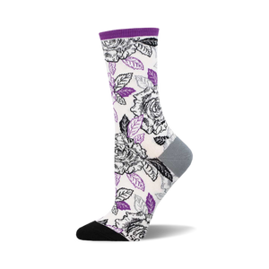 Jazz up your sock drawer with Ace Roses! These crew-length charmers sport a snazzy pattern of black and gray roses, punctuated by vibrant green leaves against a crisp white backdrop. Perfect for adding a splash of fun to your daily wear or spicing up your outfit at a casual brunch. Why settle for ordinary when you can flaunt extraordinary? Grab a pair today and let your feet bloom with style!