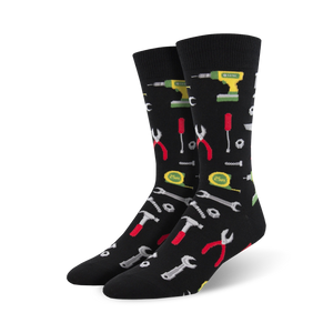 These "All Fixed" socks are tools for your feet! With a pattern of hammers, wrenches, screwdrivers, and more, these black crew socks will let everyone know that you're handy with a toolkit. These socks are quite the handy accessory, even if you have two left feet. Get ready to hammer out compliments wherever you go in these DIY-licious socks!