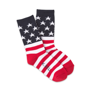 Looking to add some national pride to your collection? The perfect pair of patriotic socks awaits you. These red, white, and blue crew socks for women features a stunning flag like design with the stripes being below the ankle and the stars above. Oh, say can you see… These amazing socks?