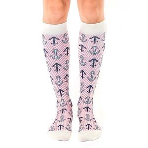 Unleash your inner captain with our Anchor socks! Cruise through life with confidence and style as these knee-high wonders hug your legs with their striking red diagonal lines and dark blue anchors. Perfect for any fashion-forward mermaid or seafaring enthusiast, these socks will have you ready to embark on any adventure life throws your way. Shiver me timbers, these socks are a treasure!