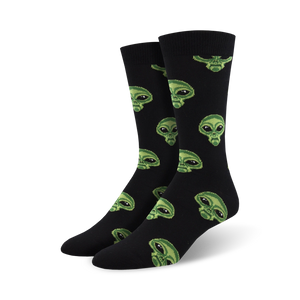 Your feet will be buzzing about these alien socks. They're out of this world with their green alien faces on a black background. If you're looking to make contact without leaving Earth, pull on a pair of these wild wonders.