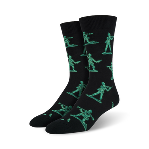 Be all you can be… and get a pair of these cool socks now! Whether you're a fan of the iconic army men in the Toy Story movies or just want to show some love for the brave heroes that defend our country, these men's novelty crew socks will show everyone your awesome sense of fashion. Each funny pair has various green army men engaged in combat printed all over on a solid black background.