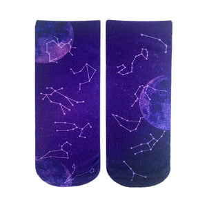 Blast off to a world of celestial style with these Astrology socks! Featuring a purple cosmos backdrop patterned with white and light purple stars and moons, connected by lines to form constellations. Get ready to make waves wherever you go as these stellar socks will make your feet fashionably famous. They're the perfect cosmic accessory for your everyday adventures. Explore the galaxy with every step!