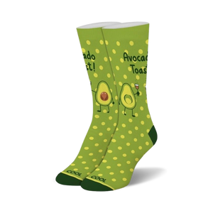 Who needs avocado toast when you can wear it on your feet?! These incredible crew socks are oozing with cuteness and featuring two cartoon avocados. One is holding a glass of red wine and the other has a speech bubble that proudly says "cado toast." And just like avocado toast, these socks will quickly become a brunch staple that can do no wrong. The light green polka dots just add a fresh, zesty kick to put you in a yummy mood.