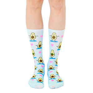Calling all avocado enthusiasts and yoga fanatics! Get ready to elevate your sock game with our "Avocado Yoga" socks. Picture this: a delightful avocado gang, gracefully performing yoga poses against a light blue backdrop, while hearts dance around them. These socks are the perfect blend of fun, cuteness, and inspiration. Just like avocados are known for their resilience, these socks will keep your feet happy and stylish, no matter the occasion. So, whether you're hitting the yoga mat or running errands, let your feet take a joyful journey with these Avocado Yoga socks.