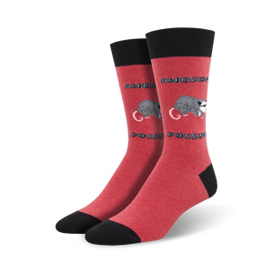 We designed these Awesome Possum socks with you in mind. You love opossums, opossums are awesome. Isn't it common sense that you need socks adorned with awesome possums? Of course! These crimson socks are emblazoned with some hip-as-can-be opossums sporting shades and the words "Awesome Possum." Put some on and live your best possum-loving life.