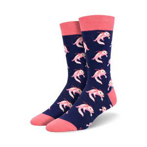 Perfect for padding around your pad or flaunting under a pair of slacks, these socks are as versatile as they are vibrant. So whether you're lounging at home or stepping out, let your feet do the talking with a splash of pink and a parade of playful axolotls. After all, if you're going to wear socks, why not wear ones that celebrate the endlessly fascinating and fabulously footloose?