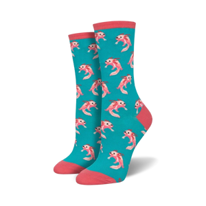 Brace yourself for the ultimate socks-perience with these fabulous Axolotl socks! Picture this: a vibrant turquoise canvas adorned with these charming salamander-like creatures in hot pink and blue. Let your feet bask in the cozy comfort of our cotton-blend fabric while these little cuties make a splash. Whether you're hitting the streets or lounging at home, these socks are sure to turn heads and spark a conversation or two. Get ready to embrace your inner axolotl and show off your fun and vibrant style!