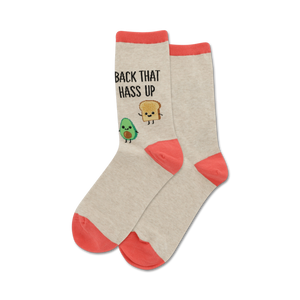 Craving a fresh new way to spice up your sock game? Get ready to make a statement, get a chuckle, and show off your taste with our "Back That Hass Up" crew socks. They're avocado-toast-ing-ly cute, but don't worry - you won't have to worry about them getting soggy. Made especially for women, these white socks are trimmed in sassy red and feature a scrumptious avocado and toast duo with some saucy text that's sure to tickle your fancy. Get ready to bring the brunch vibes wherever you go!
