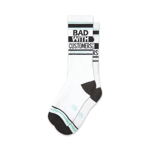 Introducing the "Bad With Customers" crew socks – because even your feet deserve a day off from being polite. Decked out in dazzling white, these socks are your secret weapon for tiptoeing around social niceties. Ideal for both the boardroom and the backroom, they’re a cheeky nod to those who prefer their customer service with a side of sass. Why fit in when your socks are born to stand out? Wear them as a subtle hint that while your shoes may be polished, your people skills are comfortably casual.