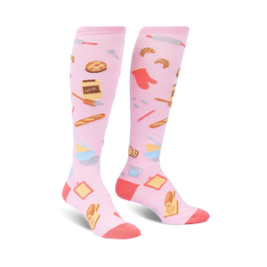 Hey there, baking aficionados! It's time to add a sprinkle of fun to your sock drawer with our Knee High Bake at 350 Socks. These socks are your ticket to a world of baking delight, served with a side of humor. Picture this: a vivid pink canvas adorned with all the baking essentials – rolling pins, whisks, measuring spoons, and even oven mitts. Slip into these socks and let your toes tap into the deliciously stylish world of baked goodies. Treat your feet to a taste of charm and comfort with our Bake at 350 Knee High Socks today!