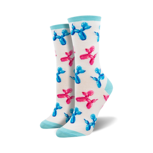 Buckle up, sock enthusiasts! Say hello to our delightful Balloon Animals socks, a whimsical crew-length creation designed to bring a smile to your feet. Picture this: a playful parade of blue and pink balloon animals, from charming dogs and graceful giraffes to mischievous rabbits, cavorting across a backdrop of black. And guess what? They're not just any socks; these bad boys have pink toes and heels with a sassy black band above the heel. Wear them and let your feet become a walking carnival of cuteness!