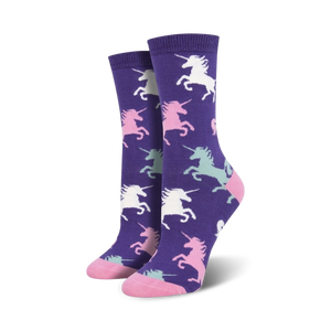 Blast off into a cosmic adventure with our Bamboo Dream Big Unicorn Crew Socks. These socks will make you feel like you're floating on clouds with their vibrant purple color and a playful pattern featuring majestic unicorns prancing among pink, blue, and white stars. Show off your socks and unleash your inner unicorn magic! Fun fact: Unicorns are known for their magical powers, including the ability to heal and bring joy to those around them.