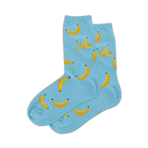 Who says life has to be bananas? We say let it slide with our Banana Peels socks! Slip into these comical crew socks for women featuring a bright blue background and a playful pattern of yellow bananas and banana peels. Life's a journey - slip on these socks and peel out.