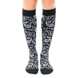 You know what's the bomb? Bandana socks! These classic black and white paisley socks are giving knee high vibes and are so fetch, they'll make you want to wear them every day. True story.