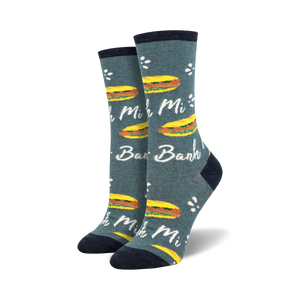 Banh Mi socks: The world's tastiest foot attire. These crew socks feature an all-over pattern of cartoonish Vietnamese sandwiches. They're blue and bright, just like the country they're named after! Warning: Wearing these socks may cause cravings for banh mi. You have been warned!