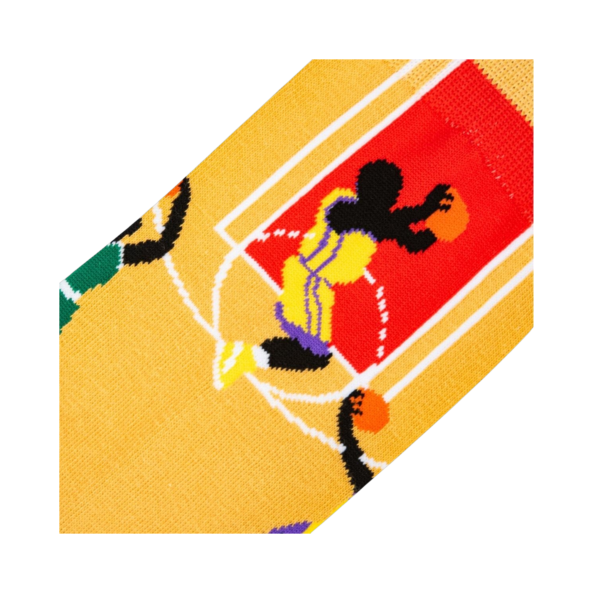 These unisex crew socks bring the pace and drama of a basketball game down to ankle level. The allover print shows players in motion, driving to the hoop, rising for a shot, and battling under the basket, so the whole pair feels like a tiny highlight reel. It has the kind of look that catches attention fast, whether you are headed to a game, hanging out with friends, or just want something with a little more personality than a plain athletic sock.