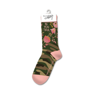 In a lush garden of vibrant pinks and blossoming greens, blooms a sock that whispers, 'Be You Tiful'. These cotton crew socks boast a riot of colorful flowers, with the empowering message woven right in. Let the playful blooms and words remind you that each step you take is a chance to blossom into your brightest you.
