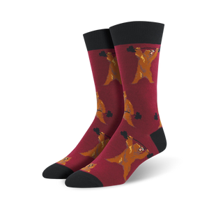 Show everyone your inner beast the next time you pump iron in these awesome socks. Each cool pair of men's crew socks feature bears that are fully extended and roaring fiercely while lifting a barbell printed all over against a brown background. Show off your muscular calves when you put on a pair of these crazy socks. Gym socks have never looked this good.