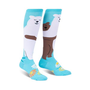 Grab a pair of our Beary Best Friends Bear Socks, and step into a world of cuddly cuteness! These knee-high socks for women feature a heartwarming pattern of brown and white bears hugging amidst vibrant yellow, orange, and pink flowers. Show off your love for these furry friends and remind yourself of the power of friendship with every step you take.