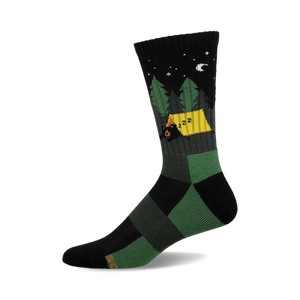 Ever wondered what happens in the forest when everyone else is asleep? A black bear catches some Z's under a crescent moon, nestled in a cozy tent. With COMPASS Merino wool socks, your feet will join the bear's dreamlandwarm, dry, and super comfy.