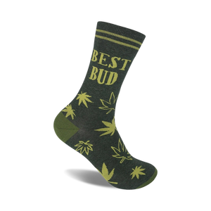 Do you consider yourself a certified Best Bud in the field of marijuana? Then these green crew socks are perfect for you, dude. With a pattern of light green marijuana leaves and the words "BEST BUD" in yellow letters, these puppies are bad to the bone. So blaze on, kick up your feet, and let the sockstonishing high ride begin!