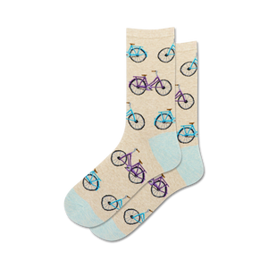 Pedal through your day with our Bicycle Crew Socks! These purple and blue bicycles on a cream background will make your feet as happy as a kid on a new bike. And just like two-wheeled transportation, these socks are durable and made to last. Slip into a pair today and feel the wind in your hair...or socks, rather!