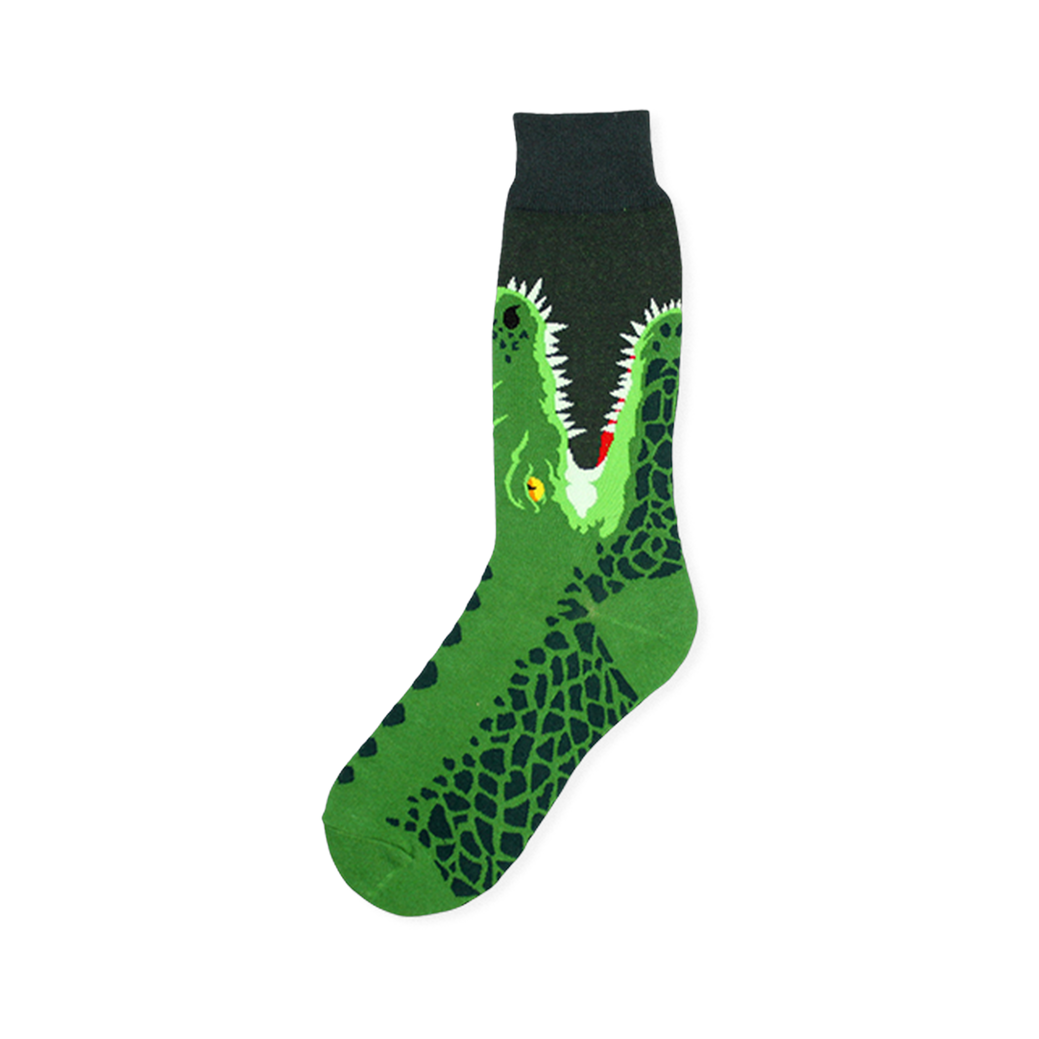 These men's crew socks bring a full-on gator presence to an everyday essential. The design centers on a bold crocodilian face with textured scales, pointed teeth, and a stare that feels equal parts wild and amused. It has the kind of detail that makes people look twice, which is exactly the point when a pair of socks is meant to do more than disappear under pants.