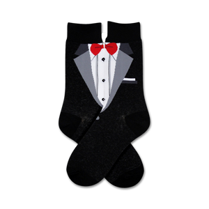 Tuxedo socks for the snazzy man in your life. Inspired by the big day, these socks are all dressed up with a black jacket, white shirt, and a red bowtie. Get yourself a pair and you'll be the best dressed man at any wedding. Only don't drink too much and fall in a pool!