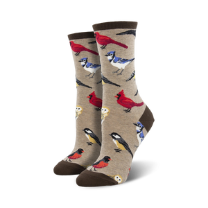 Strut like a flamingo and soar to new heights with these Bird is the Word socks! With crew length coverage and a tan canvas featuring every kind of bird imaginable, your feet will be the most popular spot for birdwatching in town. Let these feathery friends perk up your style and remind you that you're oh-so-fly. Fly the coop and get your flock today!