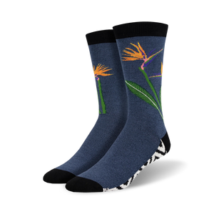 In the vast aviary of novelty sock designs, Birds Of Paradise socks stand tall as a fashion statement as bold and vibrant as the tropical flower they're named after. These socks take a cue from nature's flamboyant fashion sense, featuring blue socks adorned with an electric orange and blue flower pattern that's sure to turn eyes into paparazzi. Wear these to your next garden party and watch heads swivel like sunflowers. After all, life's too short to wear boring socks!