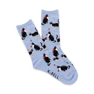 Calling all cat ladies and crazy cat people! Prepare to fall head over paw-s for our Birthday Cats socks. Picture this: a light blue backdrop adorned with a mischievous crew of black cats. They're all decked out in snazzy red bow ties, party hats, and holding red, white, and blue stars. These socks are the purr-fect way to celebrate your crazy cat lady status or show off your feline obsession. Trust us, these socks will have you feeling like the cat's meow!