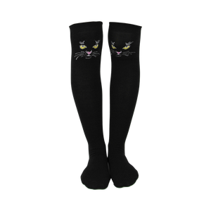 Unleash your feline flair with Black Cat socks! These over-the-knee wonders let you strut your stuff like the ultimate cat lady (or man!). Inky black with piercing yellow eyes and whisker details, these socks add a playful touch to any outfit. Purrfect for cat lovers, Halloween enthusiasts, or anyone who wants to bring a bit of whimsy to their sock drawer.