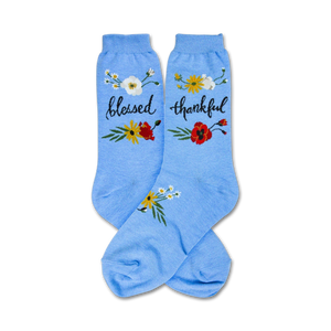 Who's feeling blue? Not you with these chill crew length Blessed socks! Whether you're counting blessings or thankful for comfy feet, these soft socks are the holy grail of your sock drawer. Floral patterns and faith-inspired sayings will keep your look fresh as a daisy. Ready, set, style!