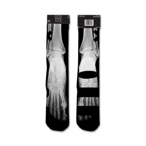 You know what's humerus? Bones! These black crew socks feature an x-ray pattern of white bones to give your feet a spooky-cool look. Talk about toe-tally awesome! The cotton blend material will keep your feet comfy all day long, whether you're breaking a leg or just chilling at home. So put your best foot forward and show off your love for the human body!
