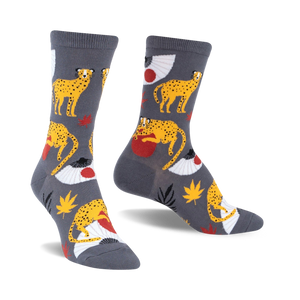 Brave On The Moon of Japan socks are a Japanese art showcase. With bold cheetahs, fiery maple leaves, and striking red fans, these socks serve up a pop of color. Slip into your own piece of art that will leave 'em speechless!