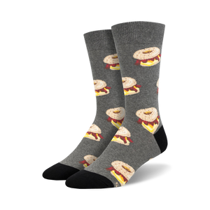 Breakfast Bagel socks are the perfect way to start your day! With an allover pattern of cartoonish everything bagel sandwiches with the cream cheese showing, these socks are sure to add a fun and quirky touch to any outfit. Everyone loves bagels, so the next time you need a pair of socks that are sure to get you noticed, grab a pair of Breakfast Bagel socks! Did you know that the bagel was invented in Poland in the 17th century? Now you do! Plus, bagels are naturally low in fat and calories and can be part of a well-balanced meal plan.