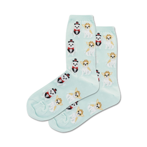 Bridal Dogs Crew Socks: These socks are the perfect way to add a dash of whimsy and joy to any ensemble. With a fun and lighthearted pattern of cartoon dogs dressed to the nines in wedding attire, these socks are sure to turn heads and spark conversations. Put on a pair and show off your playful side while paying a lighthearted homage to those canine companions who've stood by your side through thick and thin.