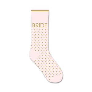 Put on these Bride Crew socks and let the pastel pink with gold polka dots carry you down the aisle in a wave of good vibes. These vibrant women's crew socks are like a confetti explosion for your feet, perfect for walking or dancing til you drop!