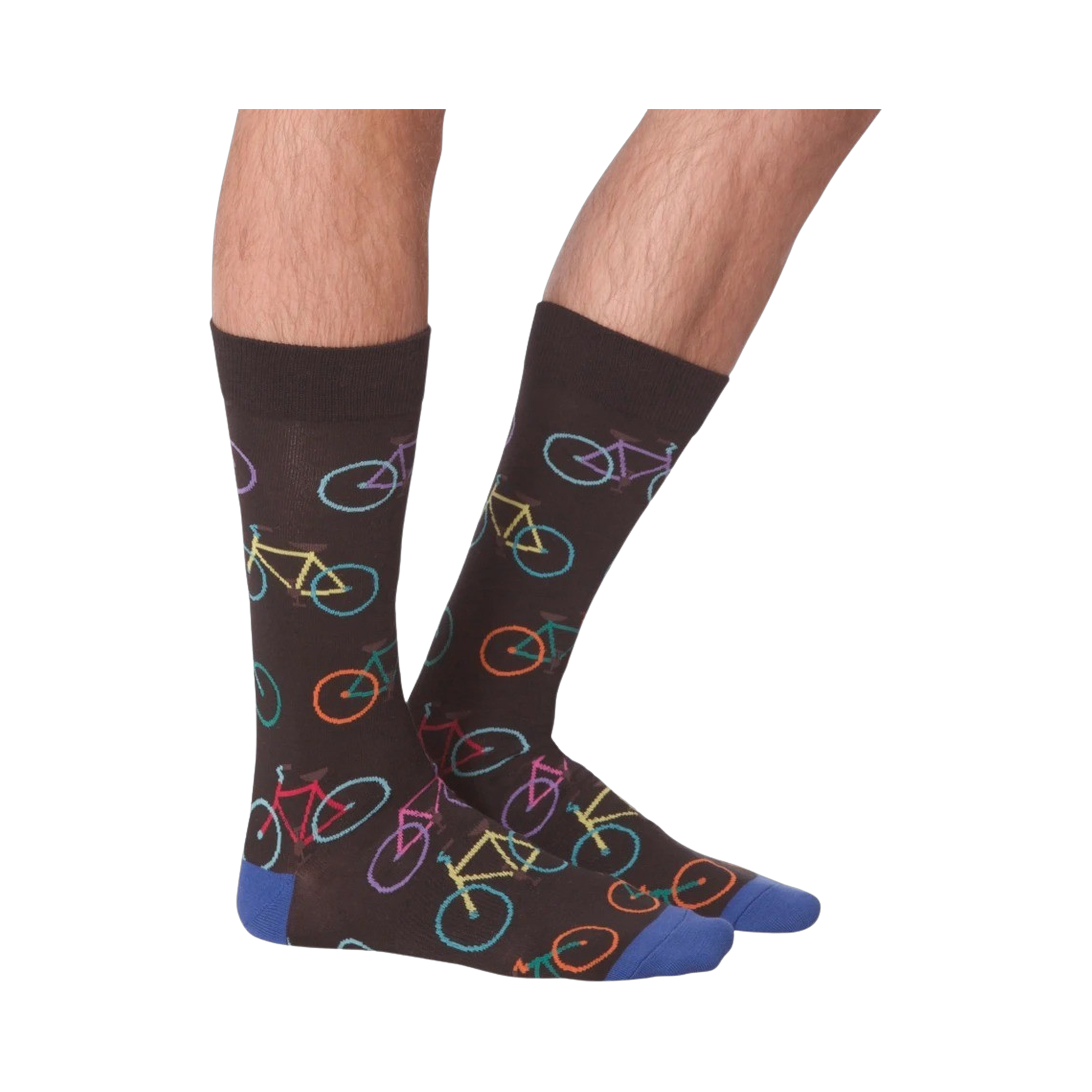 Bright Bikes edition of men's fun all-over pattern crew socks for those who love bicycling. These black bicycle themed socks with colorful bikes make the statement you want without saying a word. No matter if you're shredding single-track or just riding your bike to the store, these socks will have you rolling on!