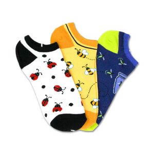 The Bugs Three-Pack of Socks: Meet the Bug Bunch! This trio of ankle-length socks is buzzing with cuteness and comfort. Wear the ladybug sock when you want to feel lucky, the bee sock when you're feeling busy, and the firefly sock when you're lighting up the night. Plus, the 3-pack means you'll never have to be without your favorite bug-themed socks!