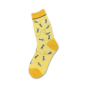 Buzz off with your boring socks! Show your sweet-style with our Bumble Bee Crew socks for women. These yellow kicks feature a pattern of adorable black and yellow bumblebees with white wings. These socks are as comfy as a picnic in a bee-utiful field. Whether you're planning on pollinating the garden or just want to add a little buzz to your day, these socks will have you dancing with the bees!