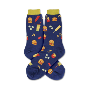Craving some tasty fashion with a side of fun? Look no further than our Burgers socks! Picture this: a dark blue backdrop adorned with a ketchup-stained fast food feast. Burgers, fries, and condiments galore, all served up in deliciously soft, durable cotton. These socks aren't just a fashion statement; they're a tasty tribute to your favorite flavors. So go ahead, indulge in your sock-wearing cravings and let your feet do the feasting.